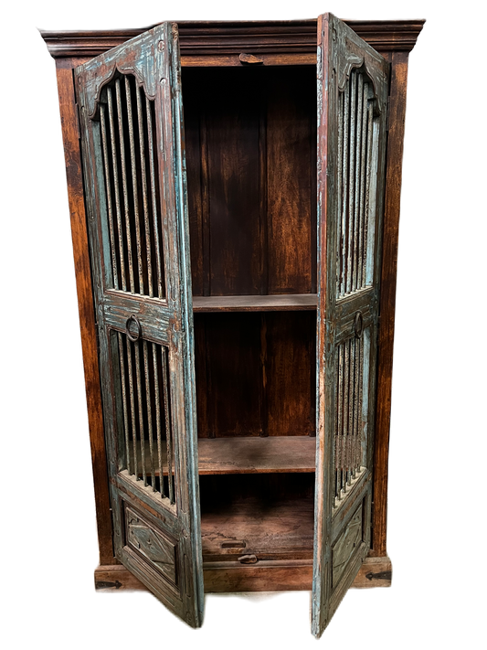 Armadio etnico indiano shabby-chic in legno massello 2 ante