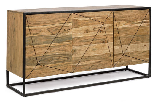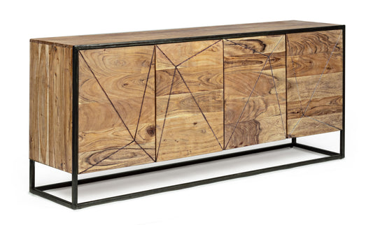 Credenza porta TV industrial decorazione geometrica in legno massello e struttura in ferro con 4 ante