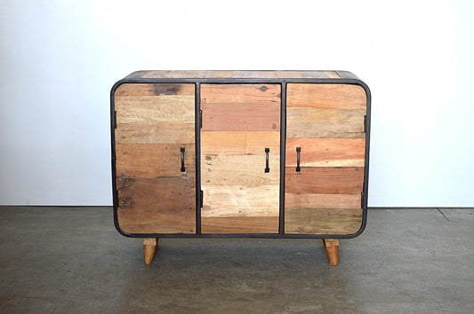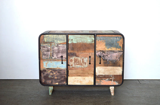 Credenza Vintage Industrial in Legno Riciclato Multicolore e Ferro Battuto 3 ante