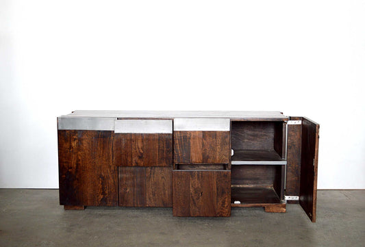 Credenza stile moderno in Acacia con frontale placcato in alluminio