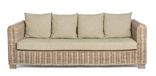 Divano 3 posti in rattan e legno di mango con cuscini sfoderabili