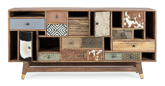 Credenza vintage multicolore pelle e metallo in legno massello 2 ante 4 cassetti