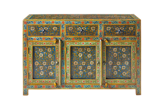 Credenza Indiana in legno massello dipinto 3a 3c