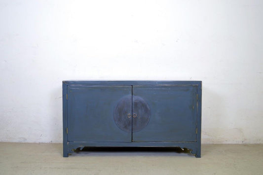 Credenza cinese in legno massello lacca blu grigio maniglie in ottone 2 ante