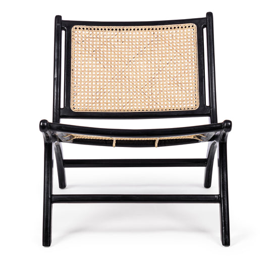Poltrona nera in legno teak e intreccio rattan set di 2 pezzi