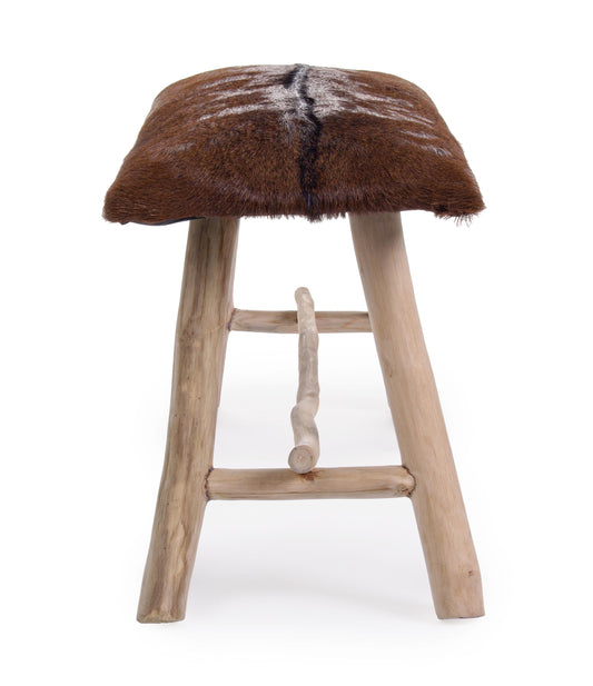 Panca vintage in vera pelle con pelo gambe in rami di Teak - SCONTO 20%