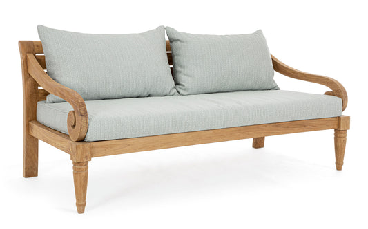 Divano etnico 2-3 posti in legno teak naturale finitura rustica con cuscini sfoderabili