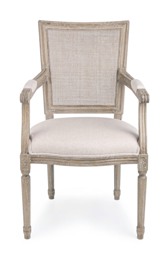 Sedia classica in Frassino con bracciolo e seduta imbottiti e schienale paglia di Vienna