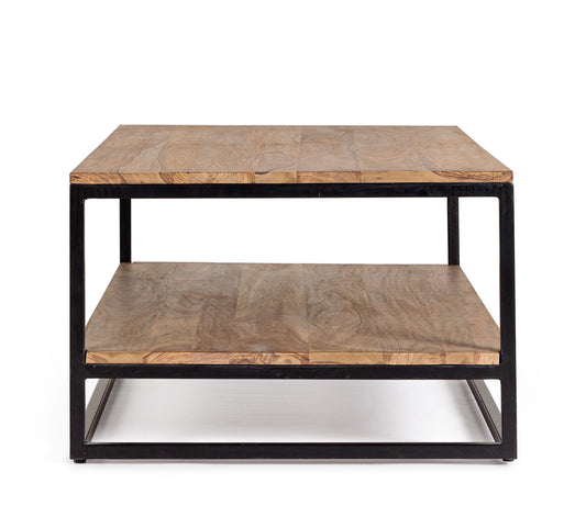 Tavolino industrial con doppio piano in legno massiccio e struttura in acciaio