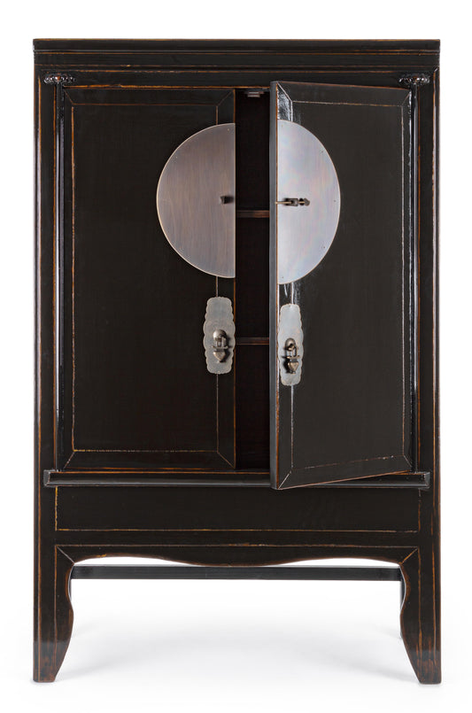 Armadio nuziale Cina in legno massello di Olmo laccato nero con ripiani