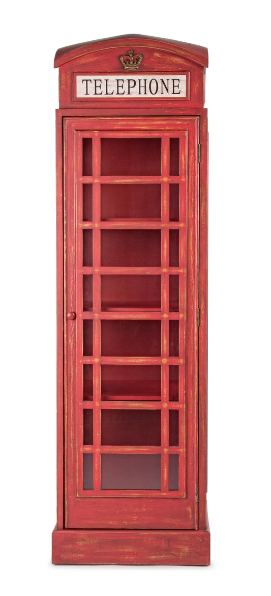 Vetrina stile cabina telefonica vintage in legno dipinto rosso