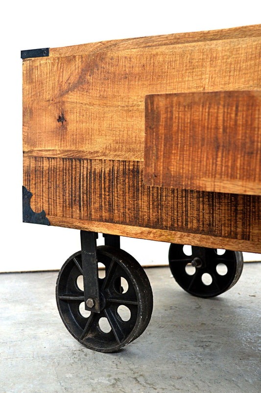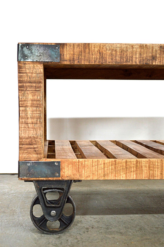 Tavolo Caffè Industrial con ruote in Legno Massello Decapato - BH208