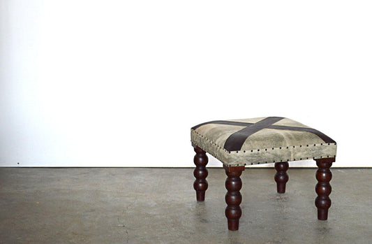 Cavallina Sgabello Cotone e Pelle Gambe in Legno Massello - BH287