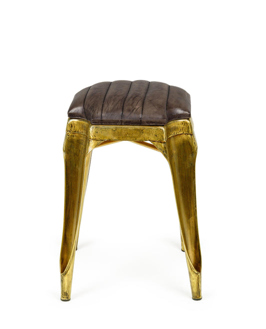 Sgabello vintage in metallo e seduta in vera pelle h 50 set 2 pezzi