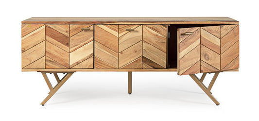 Credenza porta TV 3 ante in legno massello con gambe acciaio vintage