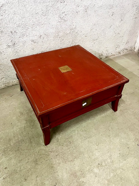Tavolino da the Cinese laccato rosso legno e ottone