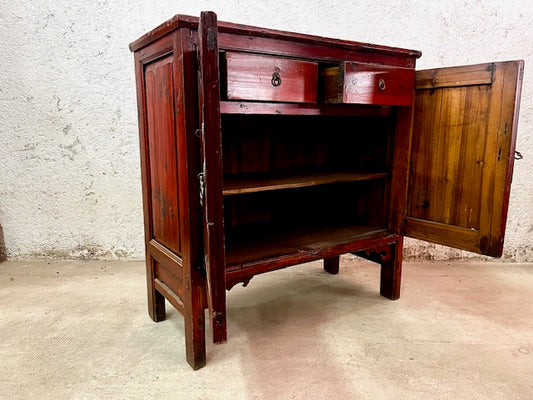 Credenza cinese d'epoca in legno di Cipresso in lacca rossa