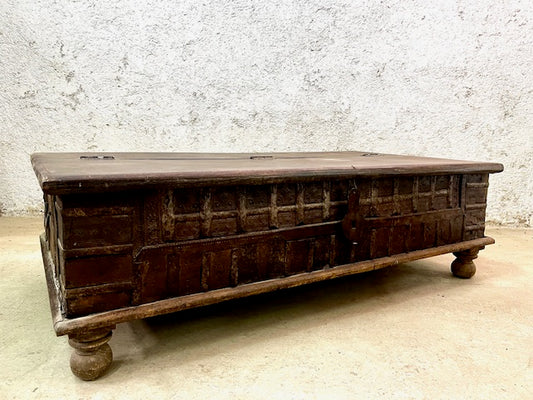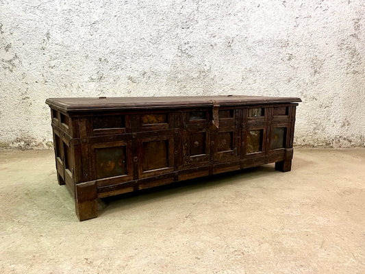 Baule indiano in legno massiccio con borchie in ferro