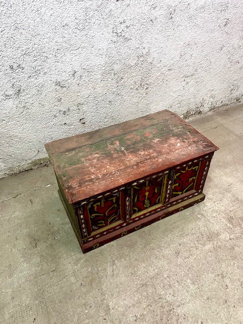 Baule Afgano originale in Cedro frontale dipinto