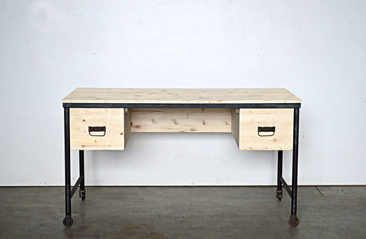 Scrittoio Industrial Legno naturale - 2 cassetti con ruote -L.Sc nat-