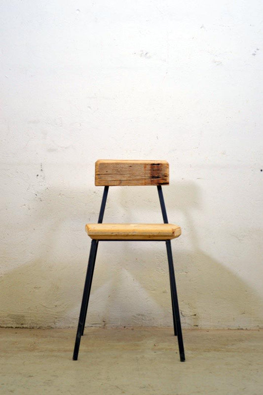 Sedia industrial vintage in legno riciclato e struttura in ferro