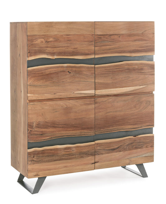 Credenza industrial in legno massello 4 ante quadrate con inserti in metallo