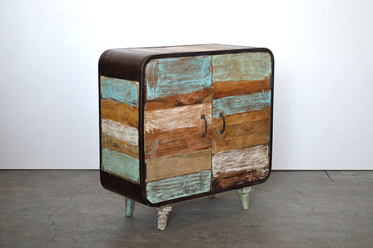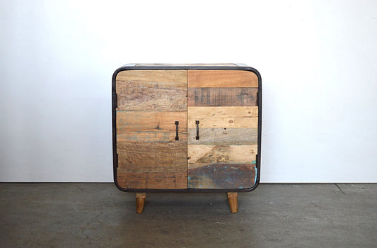 Credenza Vintage Industrial in Legno Riciclato Multicolore e Ferro Battuto 2 ante