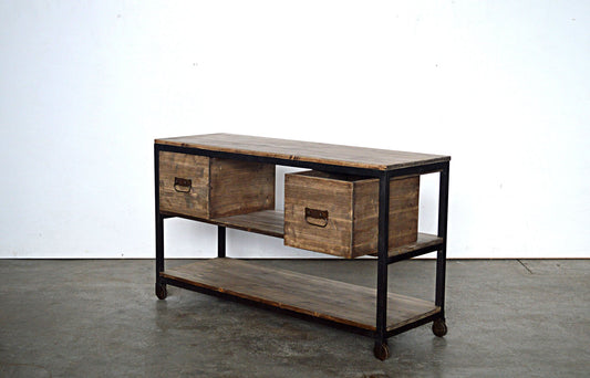 Credenza Porta TV Industrial con ruote - 2 cassetti -L.ptv-