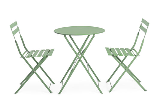 Set tavolino e 2 sedie pieghevoli da esterno in acciaio verniciato 4 colori