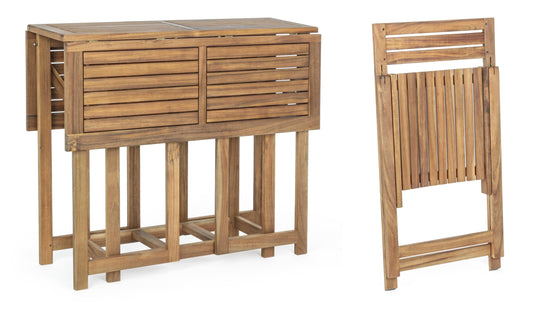 Set pieghevole tavolino e 4 sedie in legno massello