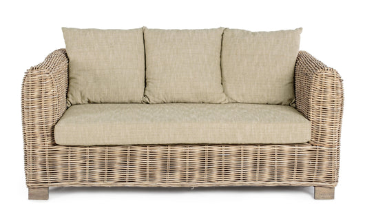 Divano 2 posti in rattan e legno di mango con cuscini sfoderabili