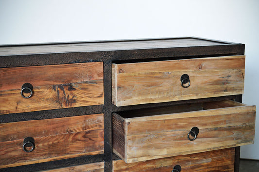 Cassettiera Industrial in ferro antichizzato e legno massello 8 cassetti