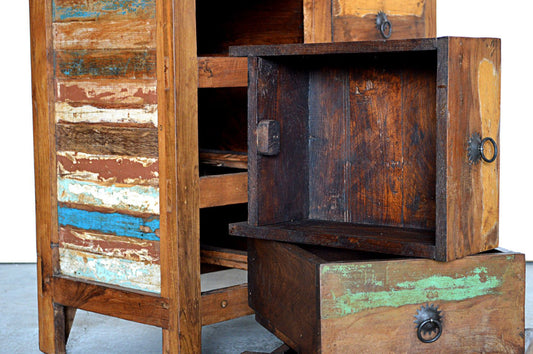 Cassettiera legno massello Riciclato Vintage 6 cassetti
