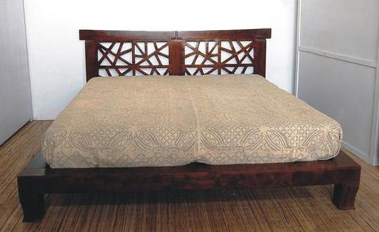 Letto Matrimoniale etnico stile oppio in legno massello con doghe in legno massello PA.505