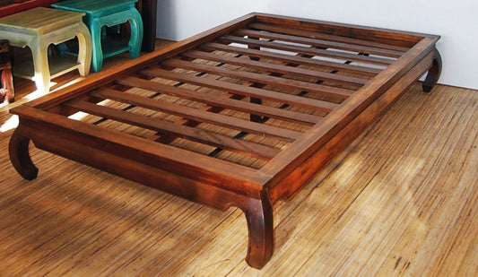 Letto etnico da una piazza e mezza stile oppio in legno massello con doghe in legno massello PA.501