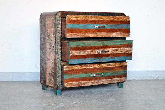 Cassettiera in legno massello riciclato shabby chic 3 cassetti