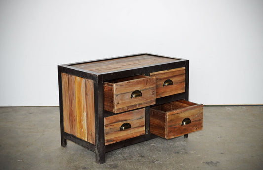 Cassettiera Industrial Piccola con ferro antichizzato e legno riciclato - 4 cassetti - EA.T.003.1